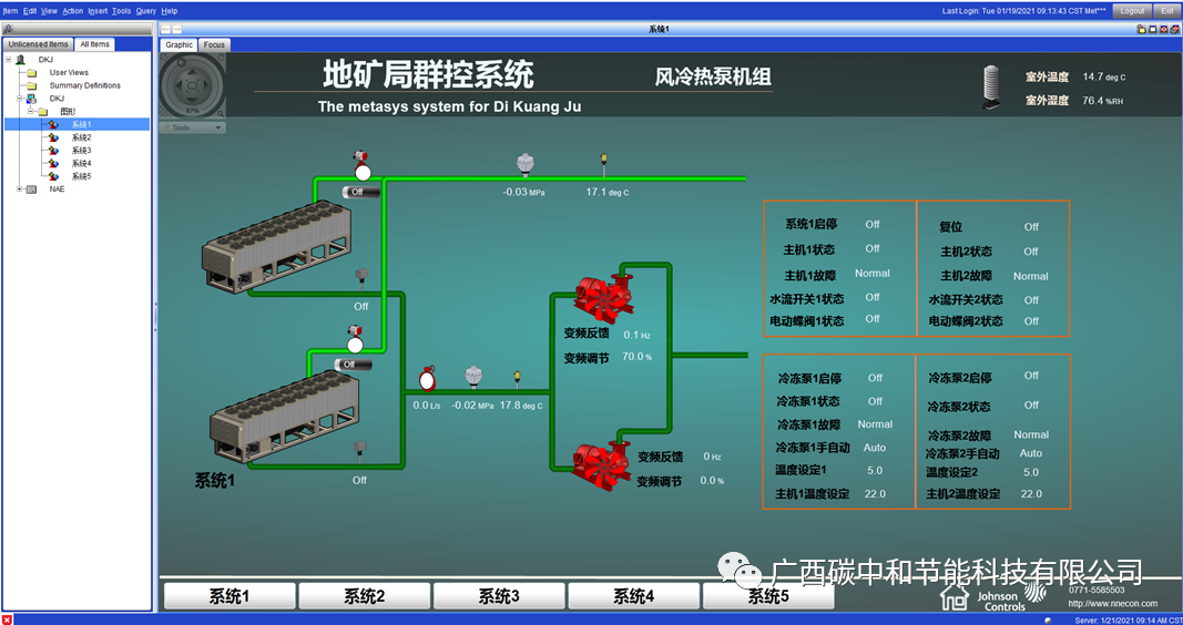 实现对主机和冷冻水泵的运行参数的实时监控,并实现远程控制,准确的主机真实能效诊断及评价,依据末端需求,按暖通工艺自动控制主机投运组合;根据楼内温度的需求及天气的变化智能自动调节冷冻水泵运行频率,降低主机负荷,达到系统高效运行,实现系统最大节能收益。
