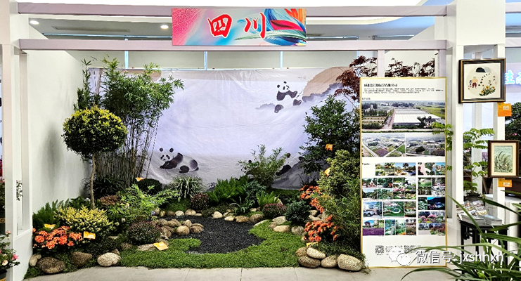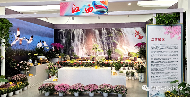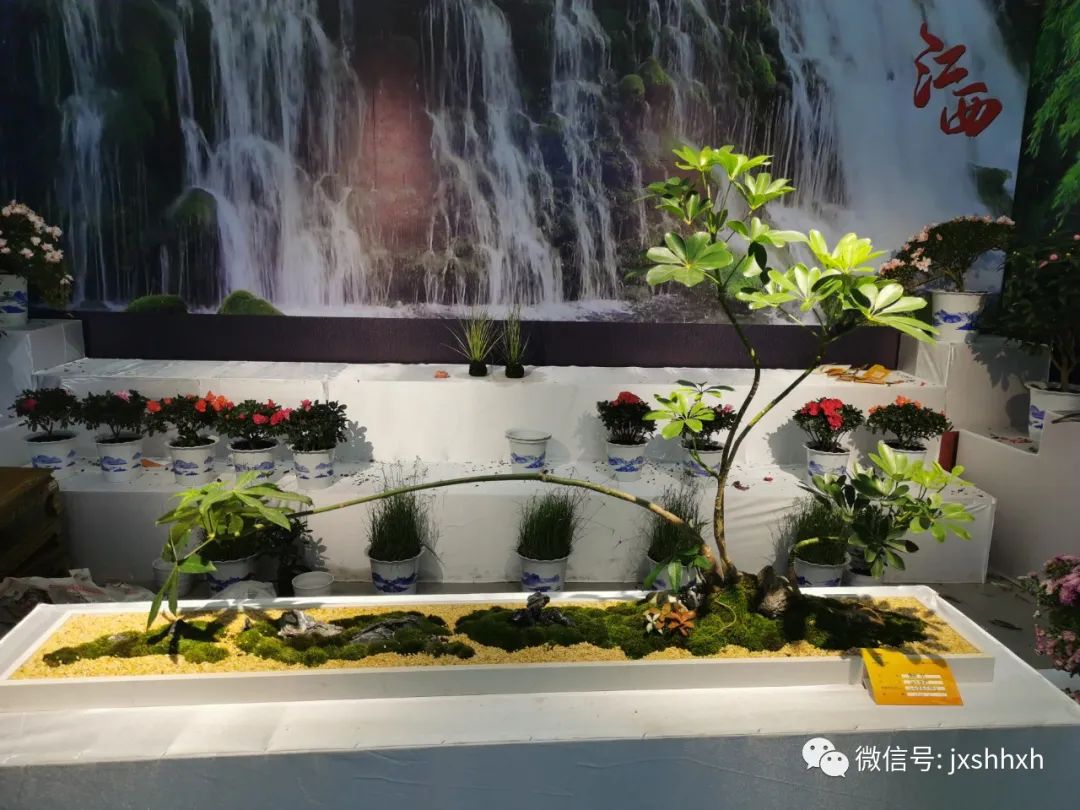 江西展区通过背景墙喷绘,展示江西大山、大江、大湖自然美景,用松林瀑布、竹径风声、白鹤起舞表现自然淳朴的生态基底。本次送展以我省特色优势品种杜鹃、兰花做为主基调,荷花、江西潦河石、插花花艺等作品自然配置在展台中。 共送展45件展品,获6个金奖,8个银奖。