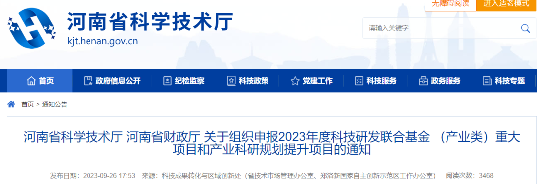 2023年度产业研发基金相关工作依托河南省科技研发联合基金管理系统(http://www.hnstf.cn)实施全过程信息化管理。申报单位经注册并实名认证后登录系统进行申报。各主管部门管理员用户使用统一分配的账号登录系统。申报单位确认提交前可以多次修改保存;主管部门审核期间退回修改的项目可以再次提交;已提交至省科技厅的项目不再退回修改。各项目申请单位、主管部门须严格按照时间要求进行申报和审核提交,逾期不再受理。申请单位系统填报时间为2023年9月27日-2023年10月20日,主管部门审核提交截止时间为2023年10月26日。