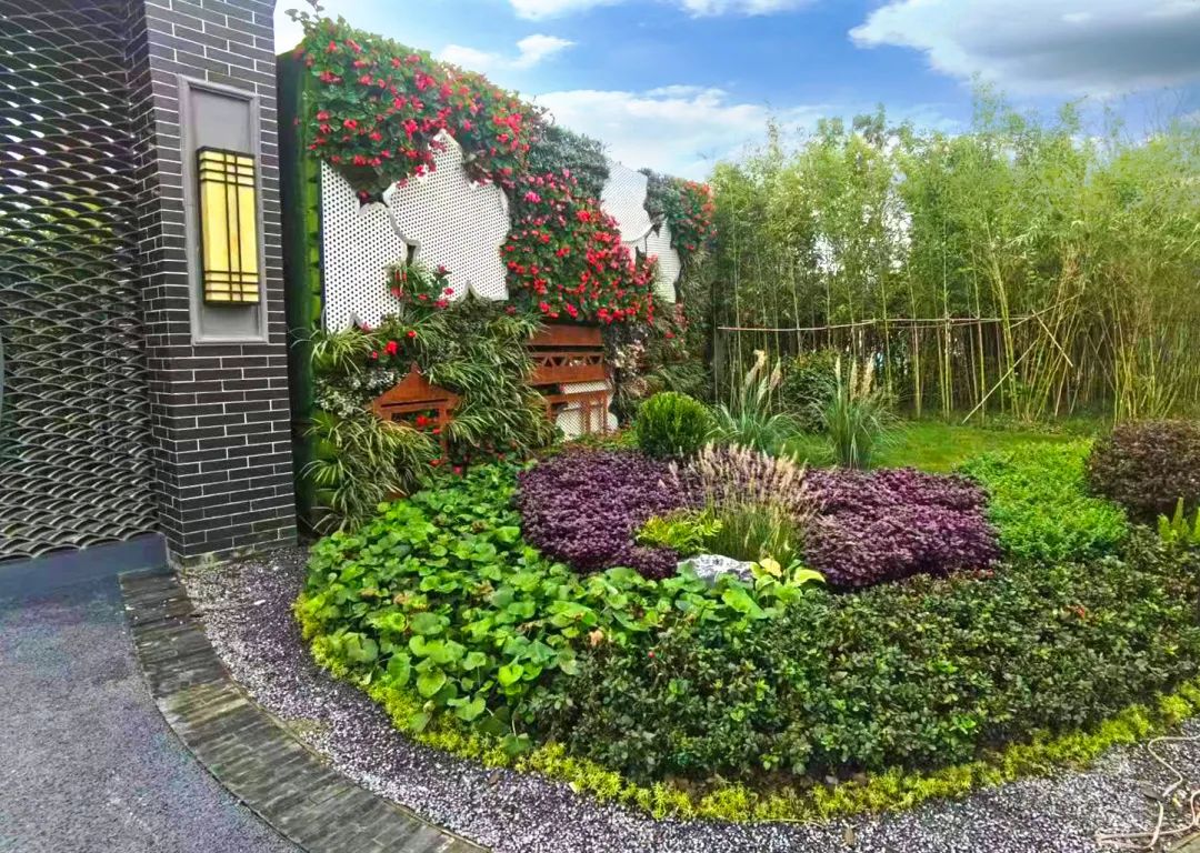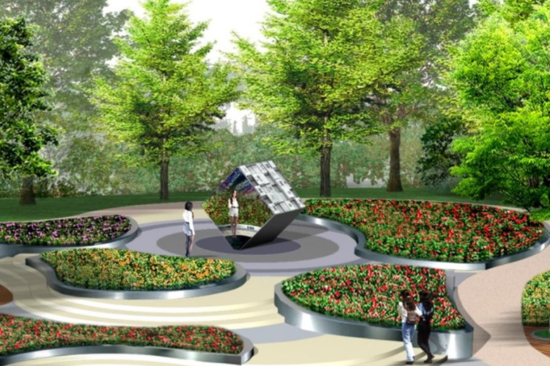 天津园在植物景观方面,以“乔木、花灌木、地被”为背景,以“立体绿化、月季花园”为特色景观。展园外围以春有花、夏有荫、秋有果、冬有绿,环抱围合空间,形成展园四季背景林,表达了自然的循环和生命的延续。欧式庭院用月桂花篱和黄杨篱围合空间、塑造模纹花坛景观。中式庭院采用芭蕉、花灌木等植物烘托中式园林氛围。展园入口运用垂直绿化技术,采用“立体绿墙”模式,通过容器花墙、藤蔓绿墙、花篱高墙等多种植物材料和园艺技术,丰富了展园空间和游览趣味,展示了独具一格的天津特色绿化种植技术。展园中心以天津市花月季与合肥市树广玉兰组成林荫花海特色景观,配合互动艺术装置和特色花坛,打造展园核心亮点,诠释和欣赏花草树木的人文精神,让景观成为文化使者。