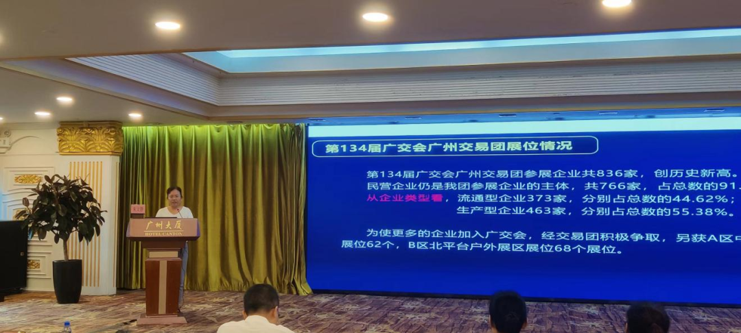 市商务局对外贸易发展处四级调研员、广州交易团秘书长朱文静讲解本届广交会广州交易团在组展情况、参展纪律、展期活动等方面的政策措施及工作要求。请本届参展企业务必遵守广交会展位使用管理规定,根据广州交易团的工作安排统一行动,以良好的精神风貌展现企业的特色,擦亮“广州.广货”的金字招牌。