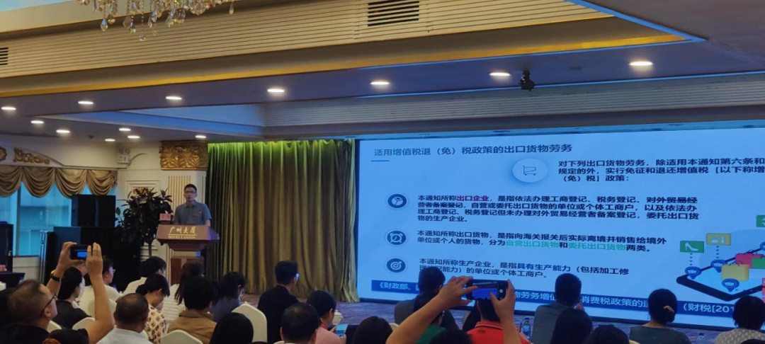 广州市税务局第二税务分局税政科副科长周楠宣讲了“出口退税提速办”等税局新策,进一步大幅提高出口企业的资金周转和使用效率,增效助力企业扬帆远航。