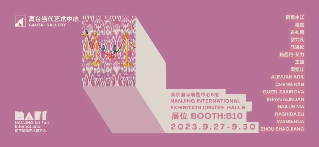 高台当代艺术中心参展2023NAFI南京国际艺术博览会,呈现「新疆客厅」主题群展,展出阿里木江,程然,古扎丽,伊力凡,马海伦,热西丹·艾力,王画 ,周绍江八位艺术家作品,展位B10。博览会将持续至9月30日(周六),欢迎在南京的朋友们前往南京国际展览中心观展。
