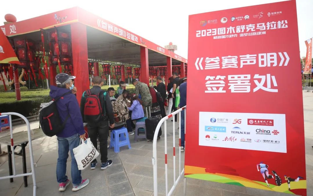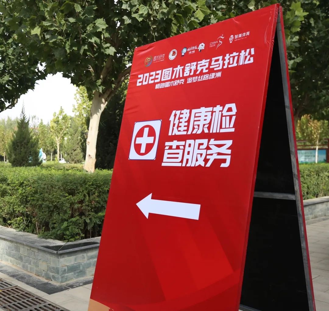 参赛选手完成参赛包领取后,根据现场指示牌指引前往健康检查服务区进行检查。