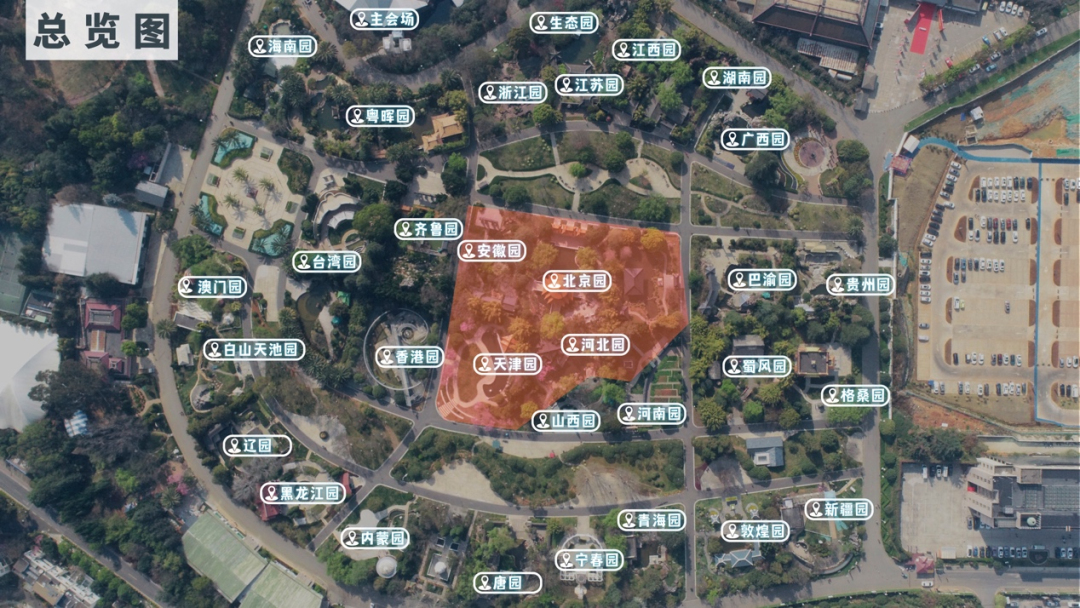 CCG Wild室外展区内(中华锦绣园)的安徽园、北京园、河北园、天津园。