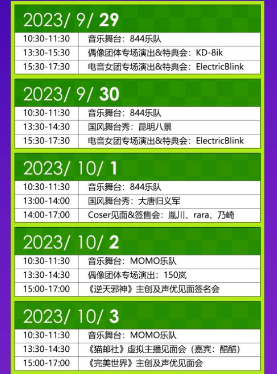 请在签售会时间段至舞台区域排队购买周边并进行签名互动