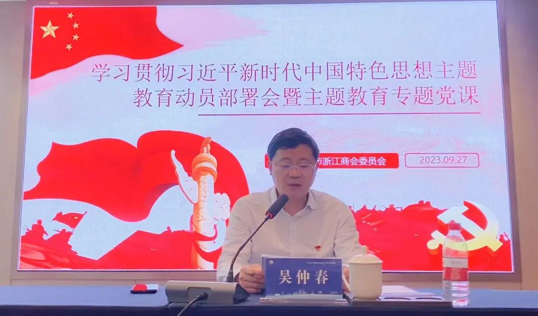 会上,吴仲春同志就主题教育工作部署提出三点要求。一是要深刻把握主题教育的总体要求;二是全面贯彻上级要求,扎实推进主题教育;三是加强组织领导,确保主题教育质量。他强调,要用好商会党建联席会、二十大宣讲团等资源,结合商会工作特点,采取小型分散、灵活简便的方式深化主题教育;要结合党建圆桌会、党建实训基地交流学习等活动形式,对党支部书记和党员进行轮训培训;要开展“党建品牌评选”“党支部建设示范点”等选树工作,全面梳理党委成立以来的工作经验,促进党建与商会建设、企业发展同频共振、互促共进;要用好商会的“浙商大讲堂”“党员读书会”等活动载体,组织党员开展形式多样的学习;要整合主流媒体和商会公众号等宣传渠道,及时反映主题教育的进展成效。