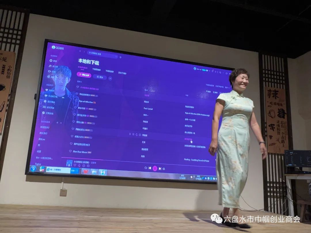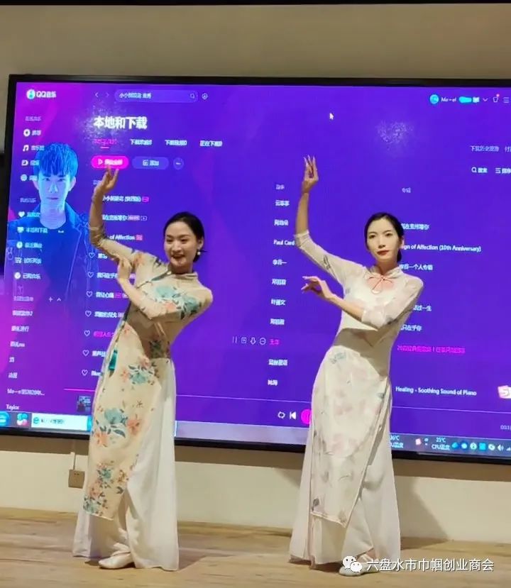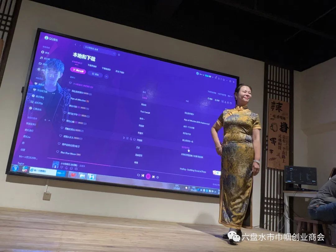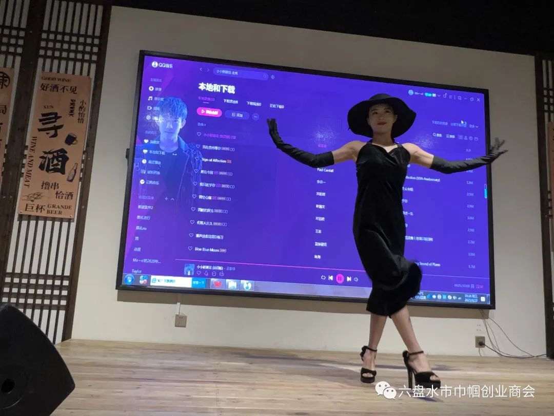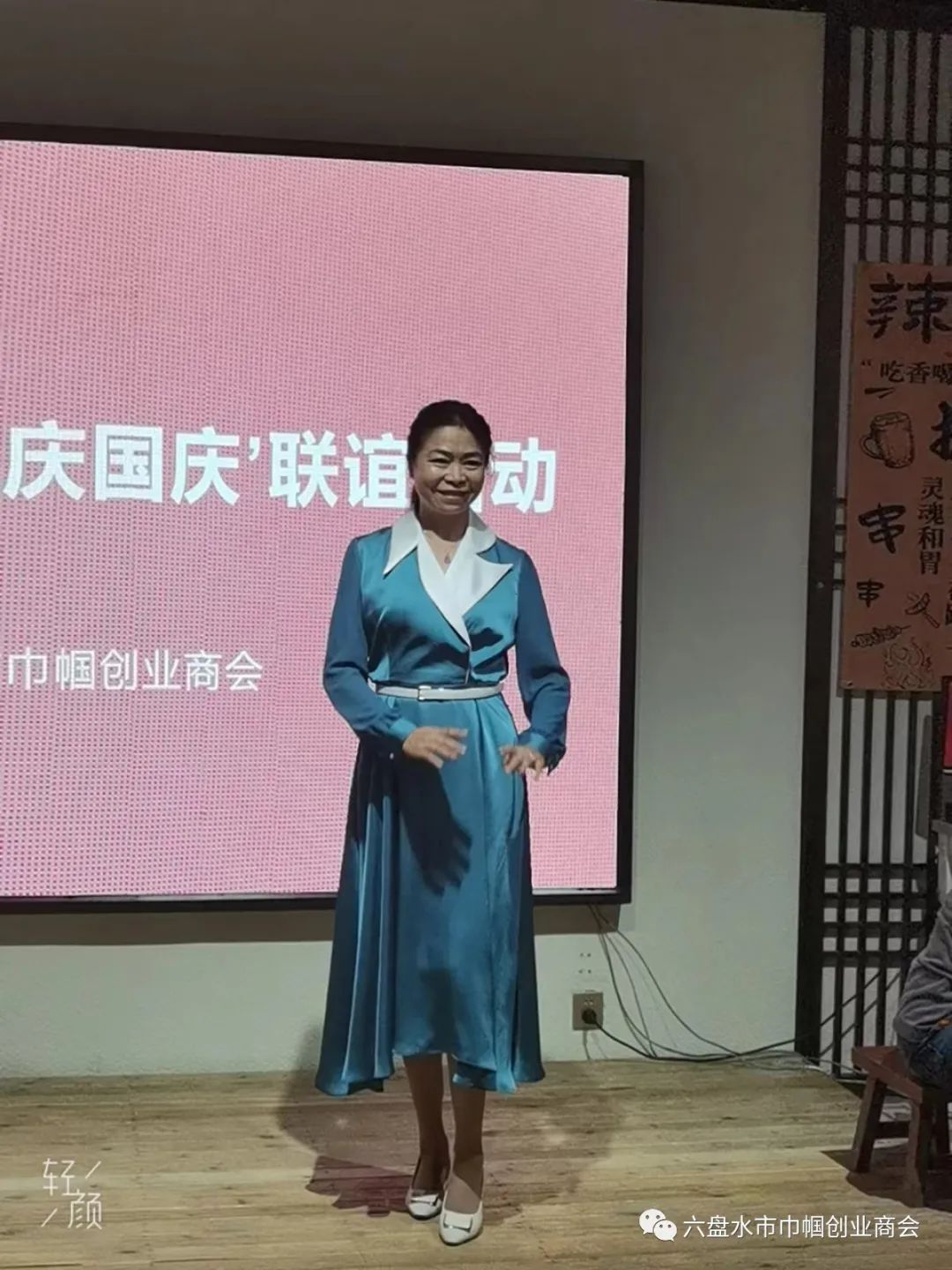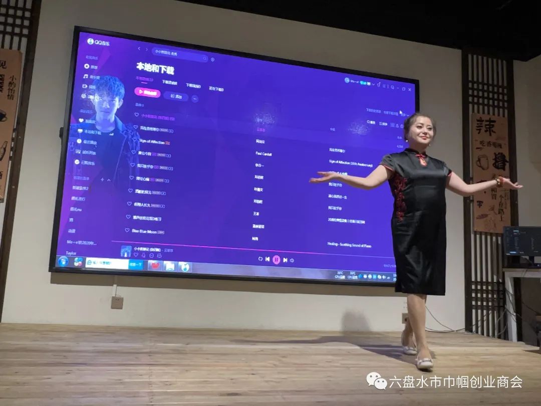 在优美动听的音乐声中,参加活动的姐妹们身着各式各样的旗袍和裙装走上舞台。她们步履轻盈,温婉从容,尽情展示自己,充满了优雅、自信。随后的节目表演精彩纷呈:由副会长谭砚、张保枝、会员冯玉维三人朗诵的诗歌《咏月》让人联想起诗句“今人不见古时月,今月曾经照古人”,会员李佳凤朗诵的《月.独白》声情并茂,其意境令人遐想;身着苗族盛装的监事长周训莲演唱的《我在贵州等你》、会员陈美的演唱的《我只在乎你》,一个是民族风一个是流行歌曲,都因旋律熟悉而引起了台下观众的和声;由钟山区巾帼商会带来了舞蹈《但愿人长久》《百老汇》,也是一个古风,一个现代风,两个不同风格的节目都让观众耳目一新;由秘书长张爱菊等表演的葫芦丝演奏《梨花颂》旋律优美,再配上嘉宾费仁英老师专业的伴舞,赢得观众热烈的掌声;受邀参加活动的老戏骨李勇跃老师表演了脱口秀,诙谐幽默的段子引来大家捧腹大笑。更有趣的是,演唱过程中穿插的游戏“以生肖打成语”让台上台下笑声一片……