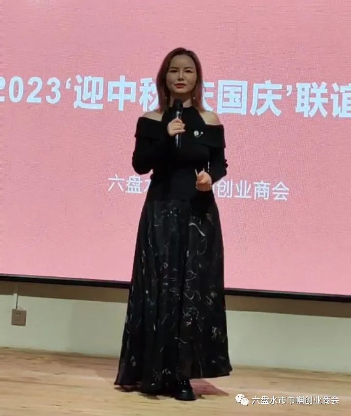 首先,商会副会长兼秘书长张爱菊代表理事会致辞。她说,秋天是浪漫的季节,也是收获的季节。这一年,我们辛勤地耕耘,默默的付出,在扮演好女人每一个角色的同时诚信经营,开拓创新,勇担社会责任,彰显了新时代女企业家和女经营管理者的风采,为六盘水市经济社会高质量发展贡献了巾帼力量。六盘水市总商会副会长、巾帼商会会长张欲笑向会员姐妹们致以节日的问候和衷心的祝福,并宣布“迎国庆、庆中秋”联谊会开始。