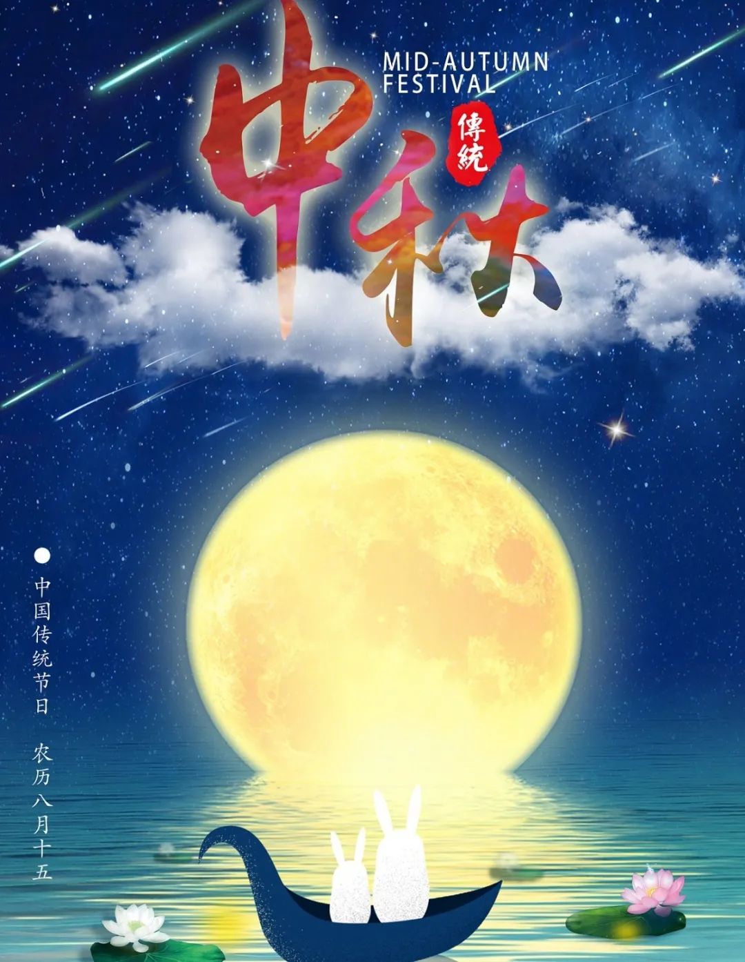 中秋节,又称祭月节、月光诞、月夕、秋节、仲秋节、拜月节、月娘节、月亮节、团圆节等,是中国民间传统节日。