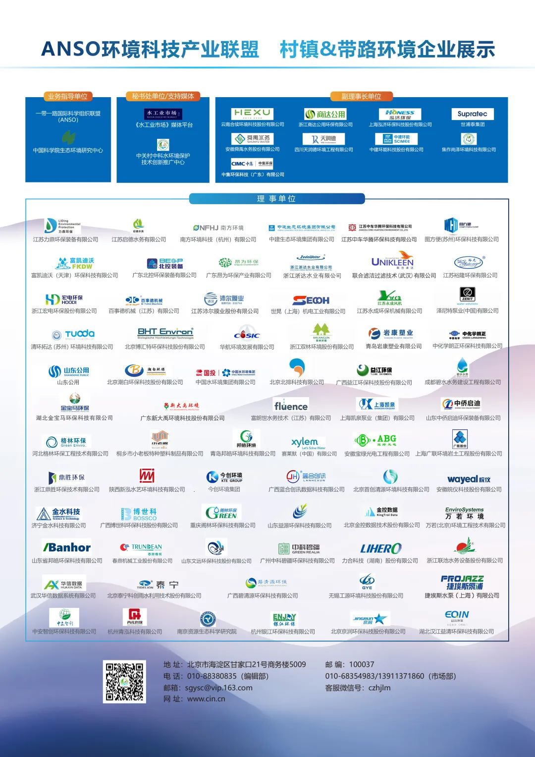 ANSO环境科技产业联盟是在“一带一路”国际科学组织联盟(The Alliance of International Science Organizations,简称ANSO)体系下,由中国科学院生态环境研究中心联合国内环境领域有较大影响力的企业发起成立的分支机构。ANSO环境科技产业联盟由水与环境领域有突出贡献的国内外专家学者、企业家和中外科研机构、院校、企事业单位组成,旨在整合“学、研”的创新技术,发挥“产”的市场经验,为我国水环境治理事业提供科技支撑,为我国水环境产业提供技术服务,为增进我国水务企业的国际交流牵线搭桥。在联盟中聚集了一大批村镇环境治理领域的企事业单位与核心专家,大家通过开展国内外同行间交流,举办论坛、沙龙、考察,整理发布行业发展白皮书,组织编制行业标准等,为推动我国村镇环境治理事业做出贡献。