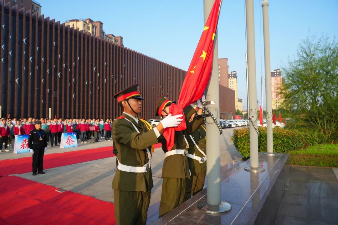 中秋、国庆双节到来之际,产业控股组织开展了形式多样、内容丰富的活动,热烈庆祝中华人民共和国成立74周年,祝福伟大祖国生日快乐、繁荣昌盛。9月27日上午,泰森日盛举行“奋斗新时代 开拓新未来”庆十一升国旗主题活动,热烈庆祝中华人民共和国成立74周年,进一步增强公司广大党员干部职工的爱党爱国热情。上午7时整,沐浴着秋日和熙的阳光,泰森日盛集团国旗护卫队迈着整齐划一、铿锵有力的步伐,扛着鲜艳的五星红旗走上升旗台。伴随着激昂的《义勇军进行曲》,全体员工发自内心的跟着铿锵的旋律高唱国歌,行注目礼。