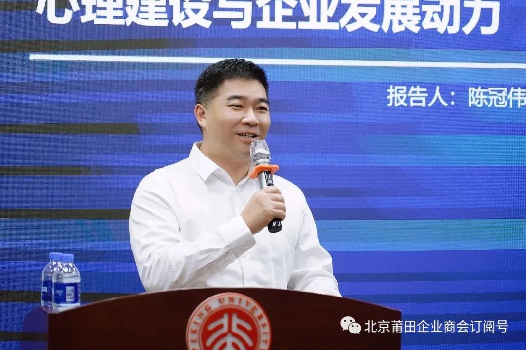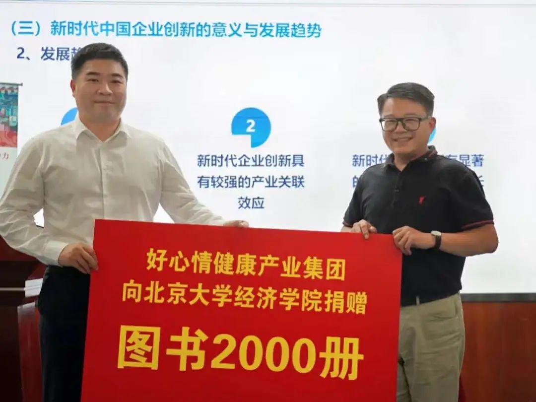 9月23日,北京莆田企业商会执行会长、好心情健康产业集团有限公司董事长陈冠伟先生为北京大学经济学院高级管理教育(EDP)中心举办的针对企业转型升级高级研究班进行授课。陈冠伟董事长授课的主题为《心理建设与企业发展动力》,参加课程的企业家们纷纷表示,陈冠伟董事长的课程内容丰富实用,对他们在心理健康与企业发展管理方面有很大的启发。陈冠伟董事长在授课中,围绕在新时期企业员工心理健康的内涵与价值、企业心理建设的实践模式与路径选择、提升员工心理健康水平的科学方法及举措、以心理建设为驱动力促进企业持续创新发展五个方面,结合专业扎实的理论知识、详实的数据、生动丰富的案例,全方位诠释了人工智能等创新技术在心理健康服务领域的创新实践。陈冠伟董事长的课程着重讲述企业家关爱员工心理健康 ,降低组织健康安全风险,保障企业基业长青。他指出:好心情集团依托数字EAP丰富实践,荣获《中国EAP行业峰会2023年度EAP优秀服务奖》,将继续发挥资源优势和技术优势,为卫生、教育、政法、公安、民政、司法等政府部门和组织机构及企事业单位提供“心理健康预防、测评筛查、风险干预、心理咨询、心理诊疗和随访关怀”的一站式、全流程、数字化的心理健康闭环服务,积极构建国民心理健康护城河。授课结束后,陈冠伟董事长向北京大学经济学院捐赠了 2000 册图书。这些图书涵盖了创新、企业管理、心理学、经济学等多个领域,将为学院的师生提供更加丰富的学习资源和研究素材。陈冠伟董事长表示:“好心情集团真心感谢北京大学经济学院的邀请,为企业家们提供了一个学习和交流的平台。好心情健康产业集团也将继续关注企业员工的心理健康和企业发展,助力全社会构建心理健康服务体系。”好心情集团陈冠伟董事长与北京大学经济学院 阎雨主任举行捐赠仪式