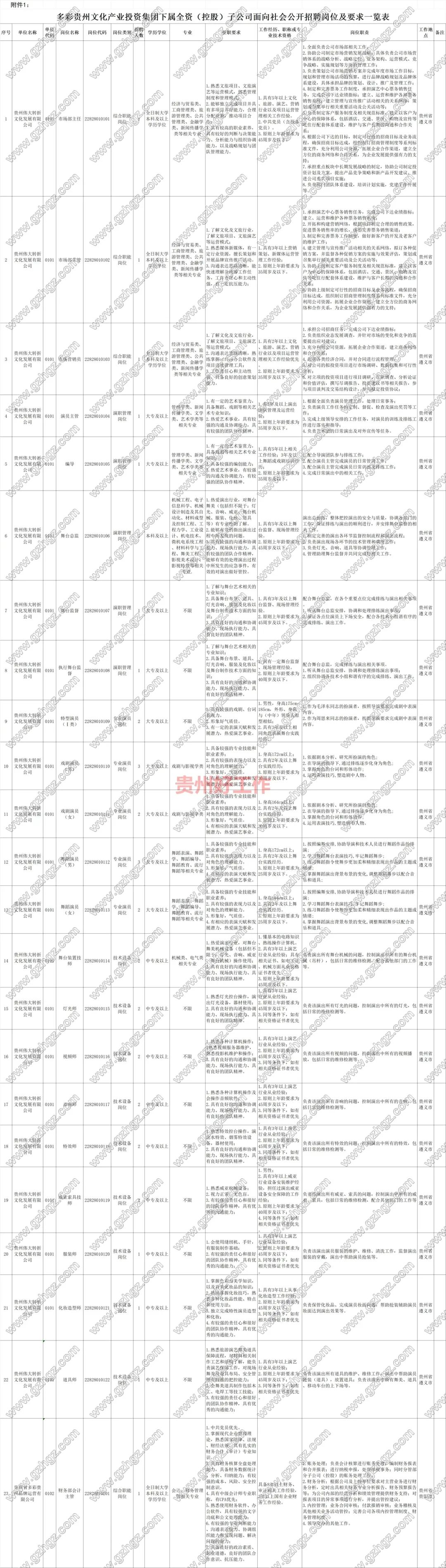 具体岗位描述详见《多彩贵州文化产业投资集团下属全资(控股)子公司面向社会公开招聘岗位及要求一览表》(附件1)。