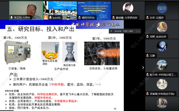 中科院的六位专家分别介绍了他们在先进材料装备制造领域的优秀技术,从项目团队、产品内容、核心技术、竞争优势、商业模式、市场应用等方面进行详细介绍。本次活动让与会嘉宾对高端装备、新材料领域未来发展方向、技术突破,商业模式创新有了更深的认识。点评及活动互动交流环节,点评嘉宾代表纷纷提问,了解技术优势与产业化进展,产业化市场应用前景、融资需求等,并给出了积极的评价和建议,技术专家们应接不暇,活动被推向了高潮。通过线上线下互动交流的方式,不仅打破了空间的限制,为成果推介、转化落地,精准对接投融资、拓展市场合作机会。