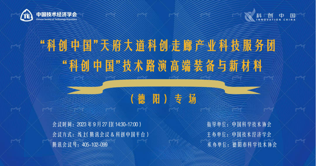 2023年9月27日下午,“科创中国”天府大道科创走廊产业科技服务团系列活动——“科创中国”技术路演高端装备与新材料(德阳)专场活动成功举办。活动由中国科协指导,中国技术经济学会主办,德阳市科协承办,“科创中国”天府大道科创走廊产业科技服务团、“科创中国”投资联合体、中关村跨界创新联盟协办。腾讯会议、科创中国平台对本次活动进行了全程直播。