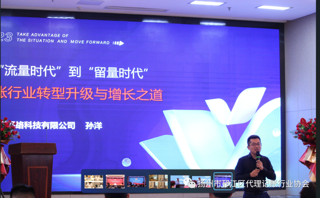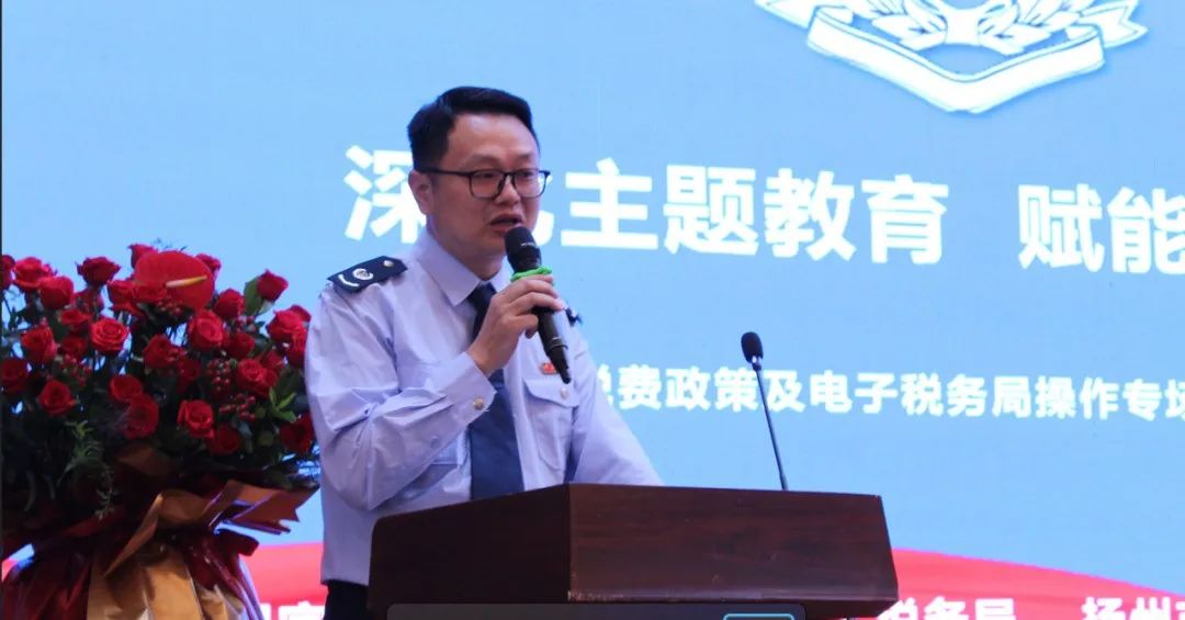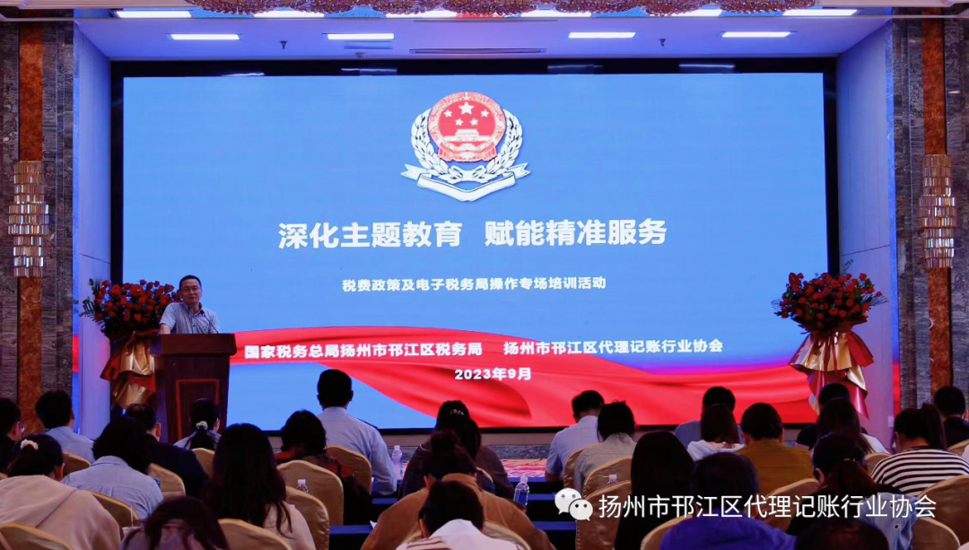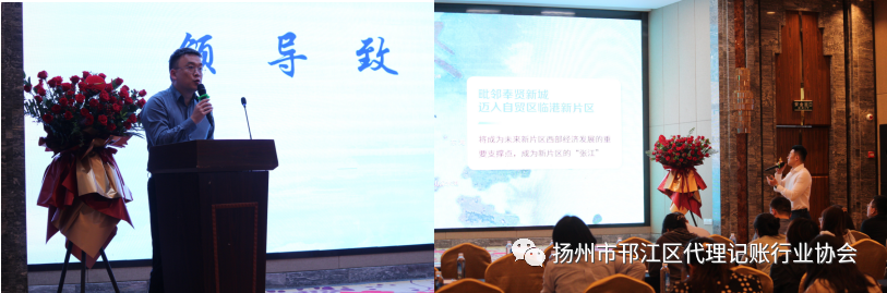 邗江区税务局纳服股股长王奎在讲话中表示,税务部门常态化开展“税企座谈、专题培训、志愿服务”等活动,宣传落实税费优惠政策,促进地方营商环境,推动财税产业数字化转型升级,希望今天参会人员,认真学习新政策新法规,提升办税效率和服务水平。