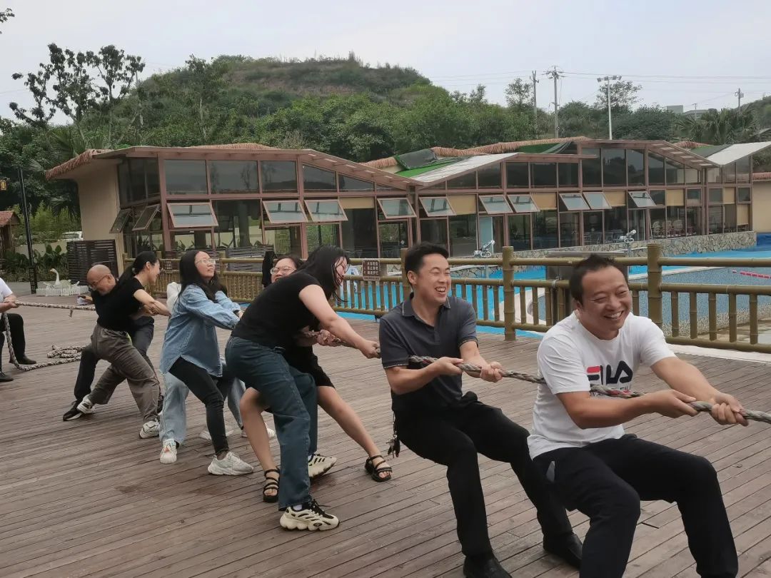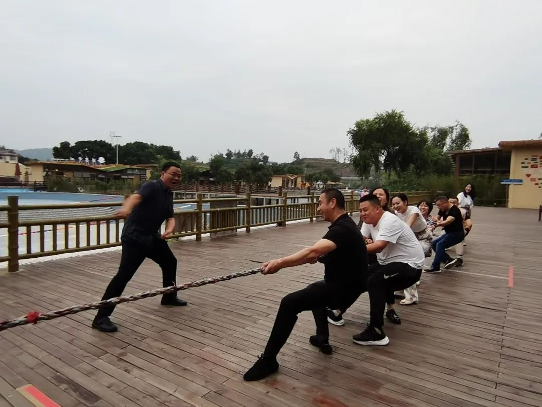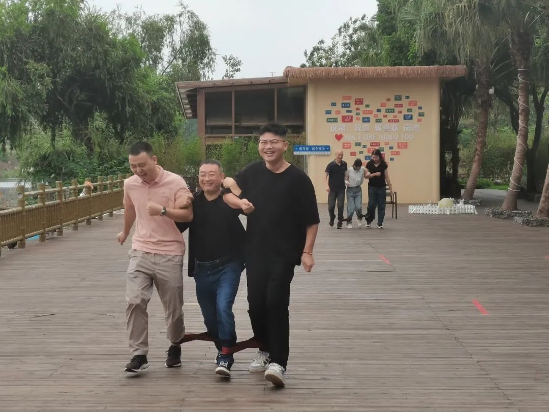 趣味竞技环节干部职工们通过抽签组队参加拔河、三人两足、夹玻璃珠比赛,在竞技中促进交流,加深友谊。