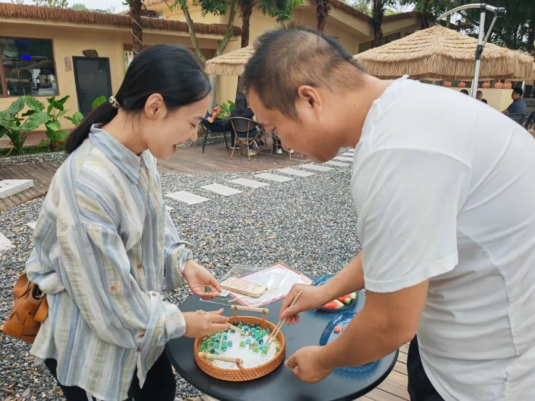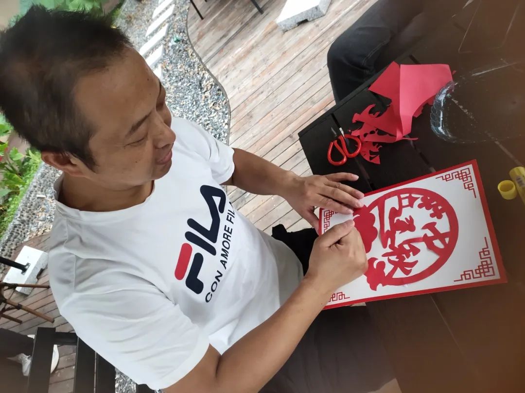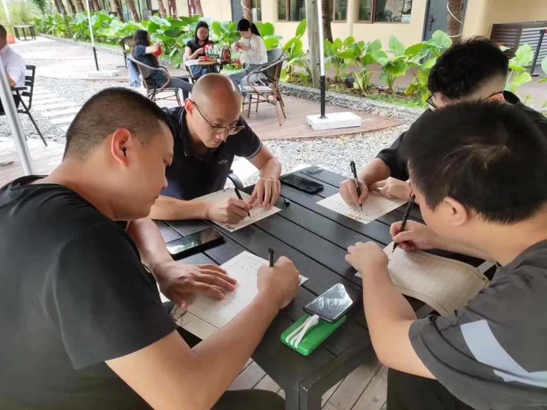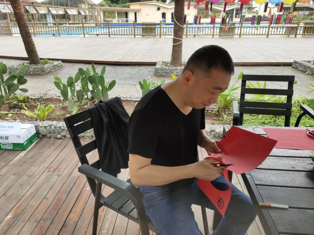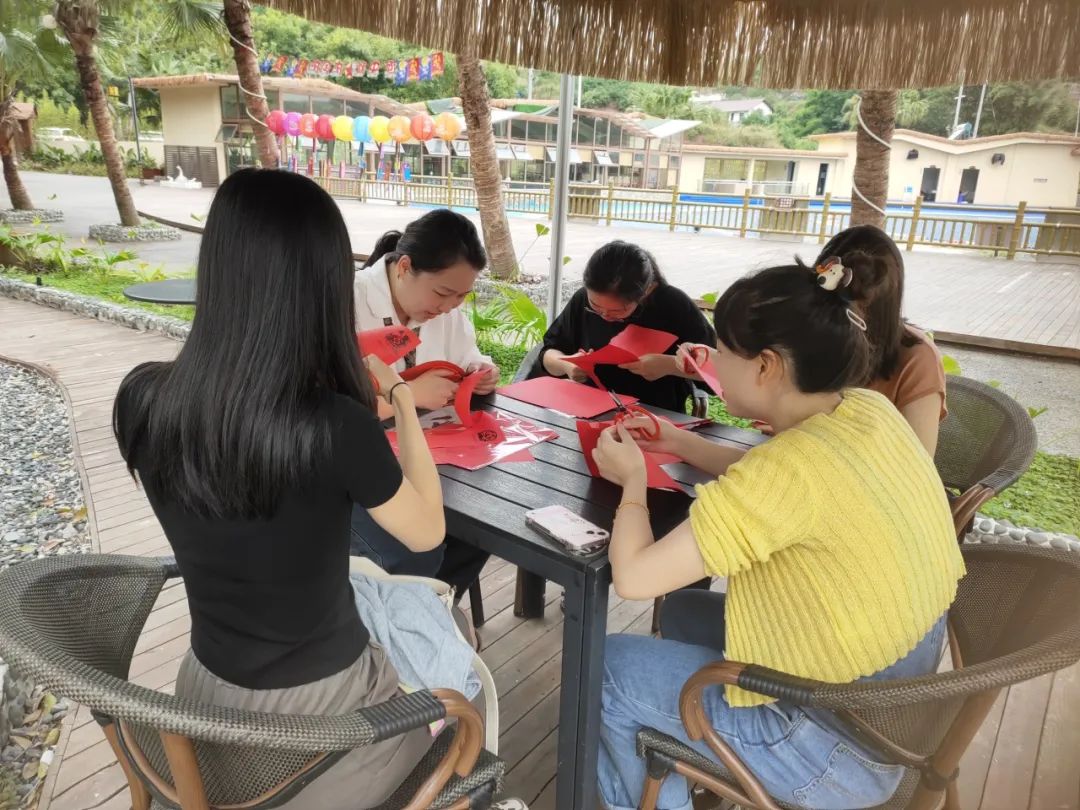 休闲娱乐环节干部职工们通过猜灯谜、剪红纸、写书法,感受中国非遗文化的魅力。
