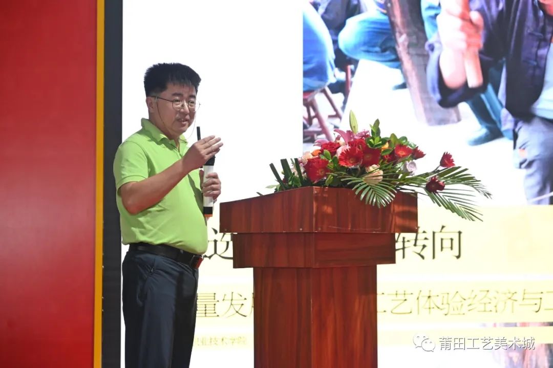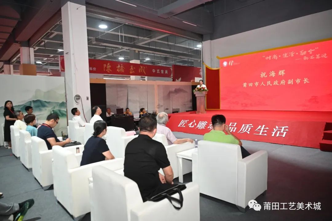 9月28日下午,由莆田市人民政府、工业和信息化部工业文化发展中心主办,莆田市工信局承办的“时尚•生活•融合—新工美说”高峰论坛在莆田工艺美术城展示中心二楼举行,工业和信息化部工业文化发展中心副主任李宁、莆田市人民政府副市长祝海辉出席论坛并致辞,论坛由工业和信息化部工业文化发展中心设计处工艺美术部部长白彦升主持。全国行业内著名专家学者、相关单位领导负责人、以及多位工艺美术大师与在校师生和媒体人士数百人共同参加了此次论坛。