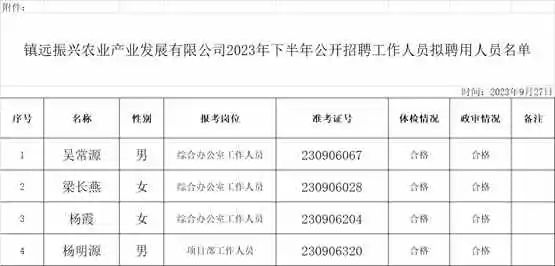 拟聘公示 | 关于镇远振兴农业产业发展有限公司2023年下半年公开招聘工作人员拟聘用人员公示