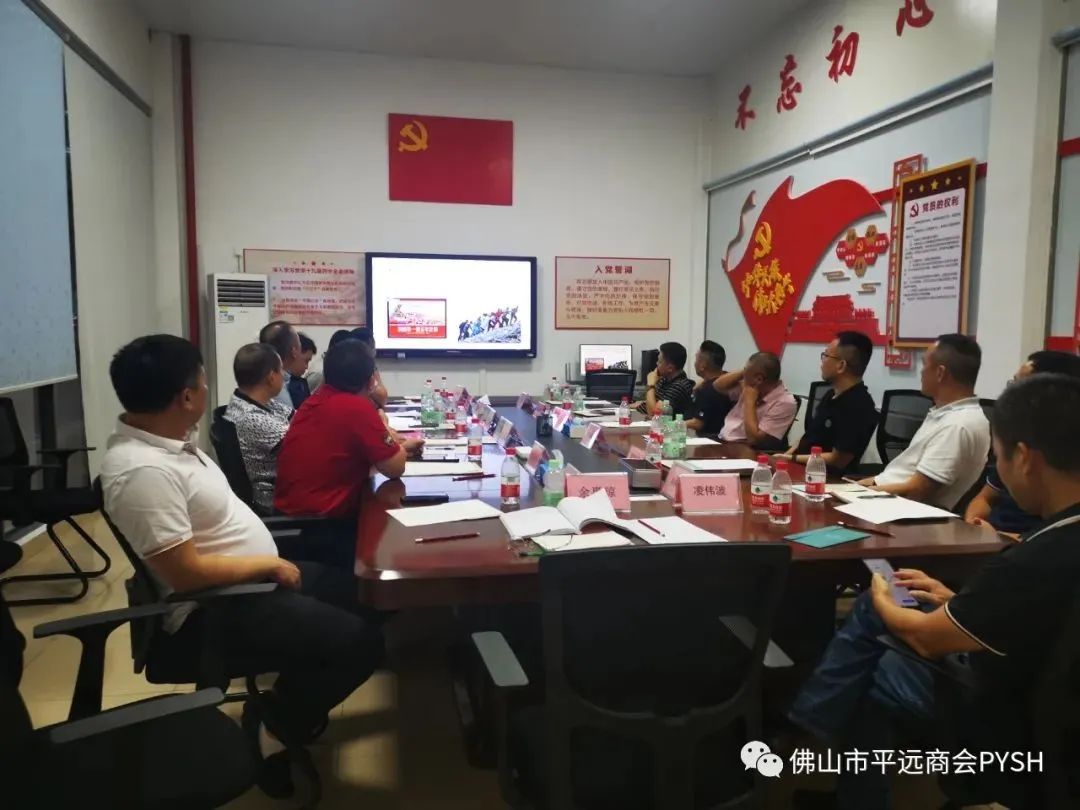 9月23日下午,佛山市平远商会党支部召开主题党日活动,组织全体共产党员和积极分子学习《学党章、遵党纪、守党规》,观看入党流程视频。根据佛山市非公经济党委发出学习号召,佛山市平远商会党支部积极响应号召,通过微信群等各种学习平台,组织党员线下线上学习。