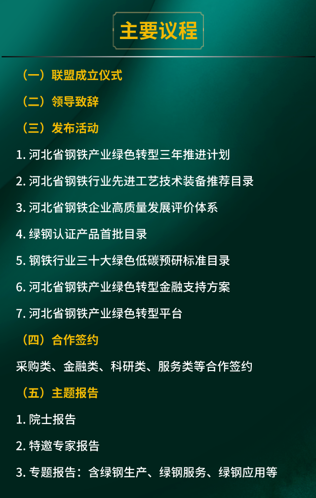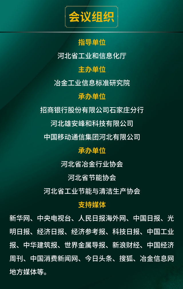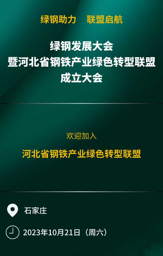 兹定于2023年10月21日在河北石家庄举办以“绿钢助力 联盟启航”为主题的绿钢发展大会暨河北省钢铁产业绿色转型联盟成立大会。此次大会由冶金工业信息标准研究院主办,招商银行股份有限公司石家庄分行、河北雄安峰和科技有限公司、中国移动通信集团河北有限公司承办,聚焦世界钢铁行业绿色低碳转型发展所面临的技术创新、政策环境、转型金融与绿色投融资等热点问题进行研讨。