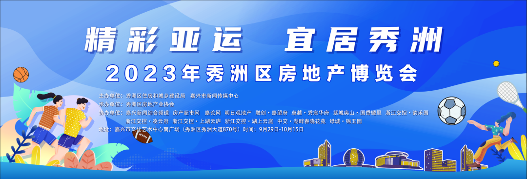 为奏响宜居秀洲全方位号角,提振宜居秀洲市场信心,满足刚需改善居民住房需求,“精彩亚运 宜居秀洲”2023年嘉兴市秀洲区房地产博览会于9月29日至10月15日在嘉兴市文化艺术中心南广场举行。