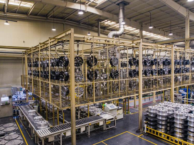 在中信戴卡股份有限公司铝车轮6号线生产车间内,27台压铸机和18组机加设备正在运行,100台智能化机器人有条不紊地生产作业,熔炼、铸造、机加工、涂装、包装一气呵成,一件件汽车车轮产品将发往世界各地。6号线负责人陈志介绍,公司产品日产量在12000件左右,覆盖了直径从16英寸到24英寸的产品,具有多种表面状态、高度轻量化的特点,备受海外客户青睐。产品的海外用户占比约在60%,在国际市场上拥有很强的竞争力。