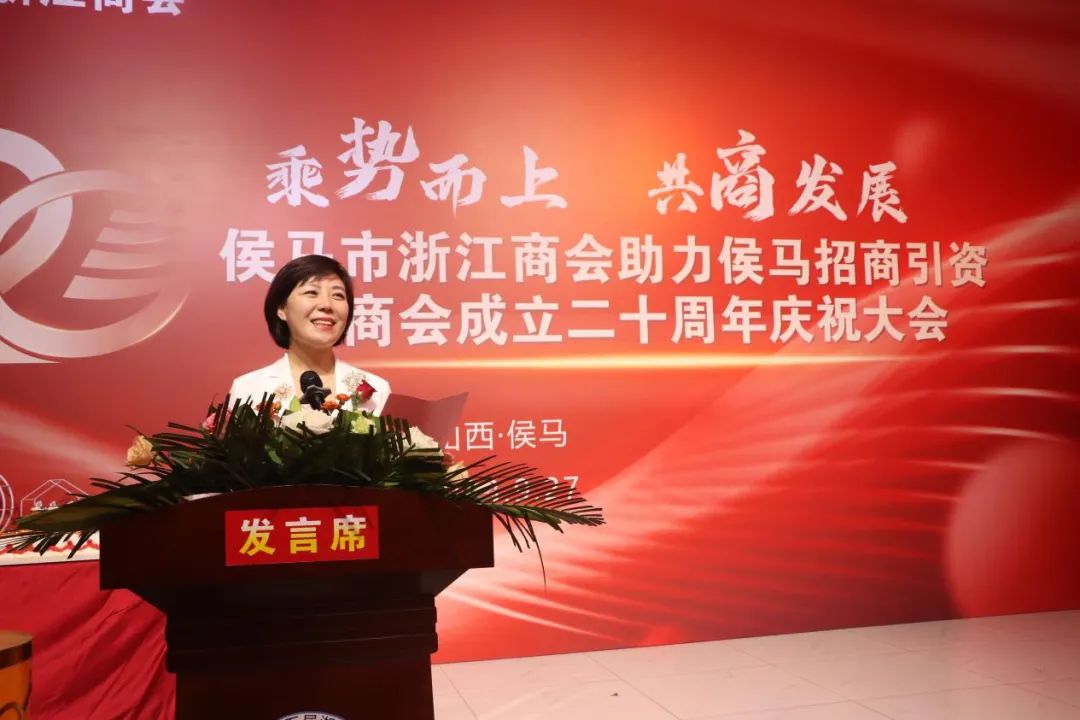 郭丽华在致辞中代表市委、市政府向各地浙商商会代表及广大浙江籍企业家表示诚挚欢迎和衷心感谢!侯马是山西南部一座重要的交通枢纽和商贸物流中心城市,是临汾“沿汾板块经济带”的南桥头堡,具有区域中心城市的良好禀赋。多年来,3000多名浙商走进侯马、扎根侯马、深耕侯马,侯马市浙江商会应运而生、顺势而为,充分发挥综合群体优势,助力以商招商、引资聚能,为侯马经济社会发展作出了积极贡献,连续四年获得全国工商联授予的全国“四好商会”称号,受到了社会各界的普遍赞誉。当前,侯马站在了新的发展起点,侯马的未来充满活力、动力、潜力。高水平的法治化营商环境,吸引着一批又一批外来优秀企业入驻侯马,也留住一代又一代的“外乡人”。希望与会各商会代表及浙籍企业家持续关注侯马、推介侯马,积极发挥商会桥梁纽带作用,聚焦商会资源整合,发挥产业协同效应,加强产业链合作,抢抓新一轮高质量发展新机遇。市委、市政府将以最大的诚意、最优的服务、最高的效率,全力营造最佳的投资兴业环境,与企业共谋合作共赢之路。