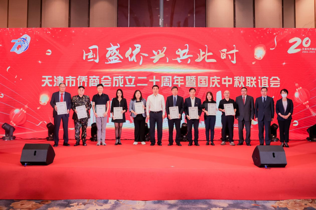 金风送爽,中秋月圆,9月27日晚,天津市侨商会隆重召开成立二十周年暨国庆中秋联谊活动,市委统战部分管日常工作副部长刘志强,中国侨联副主席、天津市侨联党组书记、主席李占勇,市委统战部副部长、一级巡视员林洁,中国侨商联合会副会长兼秘书长夏付东,中国侨商联合会常务副会长、天津市侨商会会长李学海,市政协港澳台侨和外事委员会主任金志方,市工商联主席、市总商会会长娄杰,市人大民宗侨委员会副主任委员林引等出席,原侨办领导、商会名誉会长、统战部与侨联相关部门负责人、友好商协会相关领导出席,与侨商一起畅叙友情,共谋发展。联谊会由理事企业天津尚德药缘科技股份有限公司联合创始人、实控人、首席运营官郝曼淋,副会长企业天津滨海松昌国际物流(集团)有限公司进口部副经理胡雪斌主持。