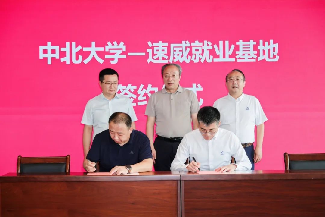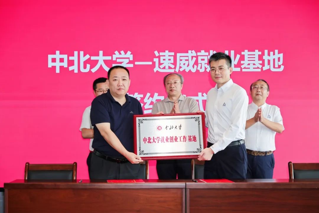 揭牌仪式后,我校与速威共同签订了合作协议,刘宝华代表学校为速威授牌“中北大学就业创业工作基地”。学校将以本次签约为契机,进行优势互补、资源共享,进一步加大交流与合作,助力培养更多应用型人才,为贵州的经济社会发展作出更多贡献。