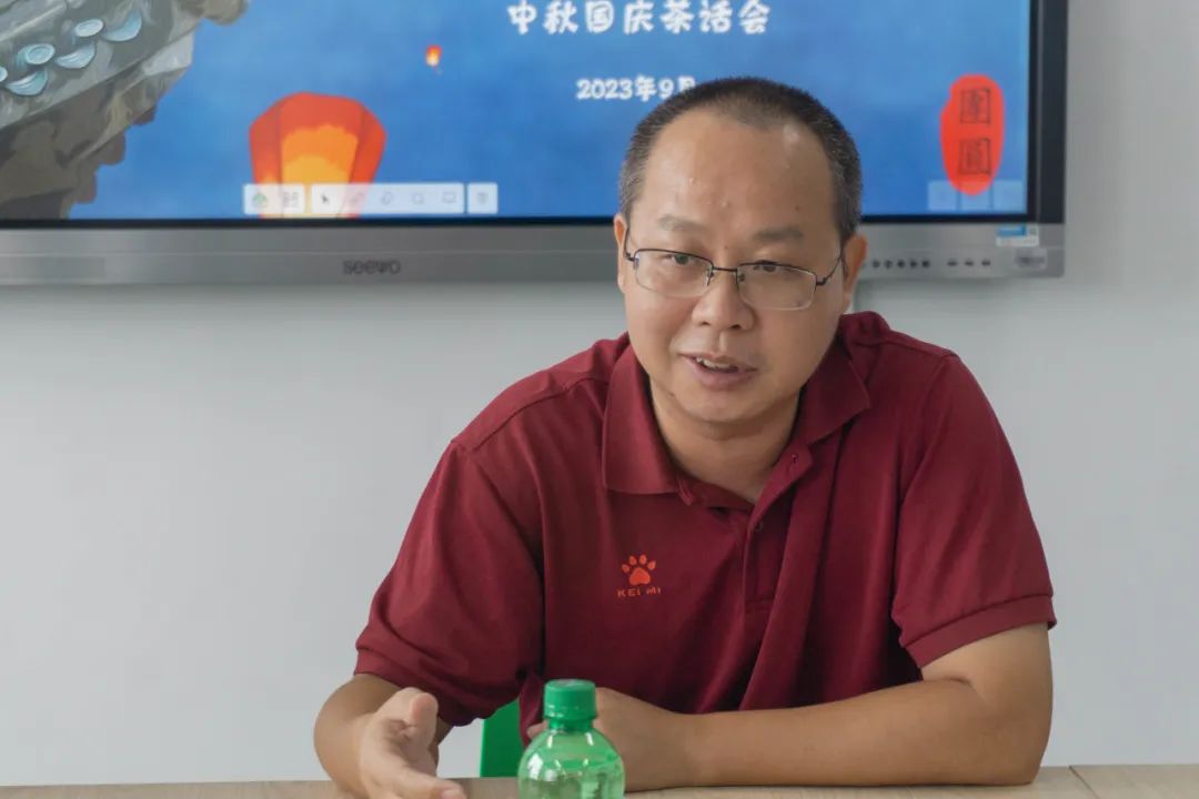 大家围坐在一起,聊着自己的工作和生活。一声问候,两句细语,茶话会洋溢着浓浓的情意。“中秋是咱的传统节日,大家坐一块聊聊天、谈谈心,高兴又热闹”进一步增强大家的情感交流”。