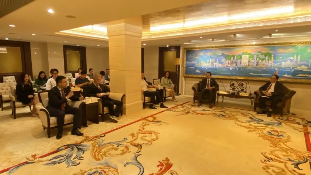 香港代表团拜访了香港中华总商会,受到了林铭森荣誉会长以及会董们的热情接待,双方代表亲切的交流。