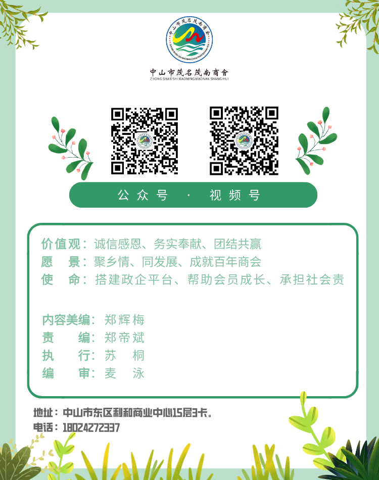 麦泳会长发表了重要讲话,强调了商会的使命和愿景,鼓励会员积极参与商会活动,并提出了未来的发展目标。希望商会将继续凝心聚力,以发展好每一位会员企业为己任,大力弘扬茂南企业家精神,聚精会神干事业、一心一意谋发展,同时强化商会内部管理,增强服务能力,增强会员凝聚力,有力推动商会发展,积极承担社会责任,彰显商会平台的价值,以实际行动为中山、茂南两地的经济发展和社会进步作出更大的贡献!