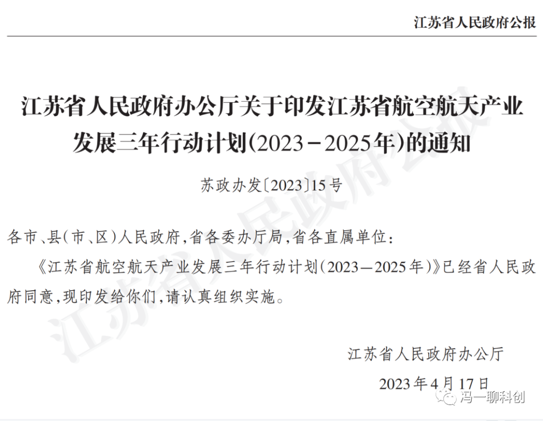 江苏省航空航天产业发展三年行动计划