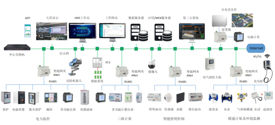 AcrelEMS工业园区能源管理系统帮助搭建工业园区的能源计量体系和能源管理,结合物联网、大数据技术,可实现园区电网电力监控、能耗统计、负荷预测、照明控制、负荷监控、充电桩运营管理、分布式光伏监控、储能控制管理、用水监测、暖通管网监测、环境监测、能源计费等功能,通过一套平台实现园区能源数字化集中管理,达到可靠、安全、节约、低碳用能的目的。