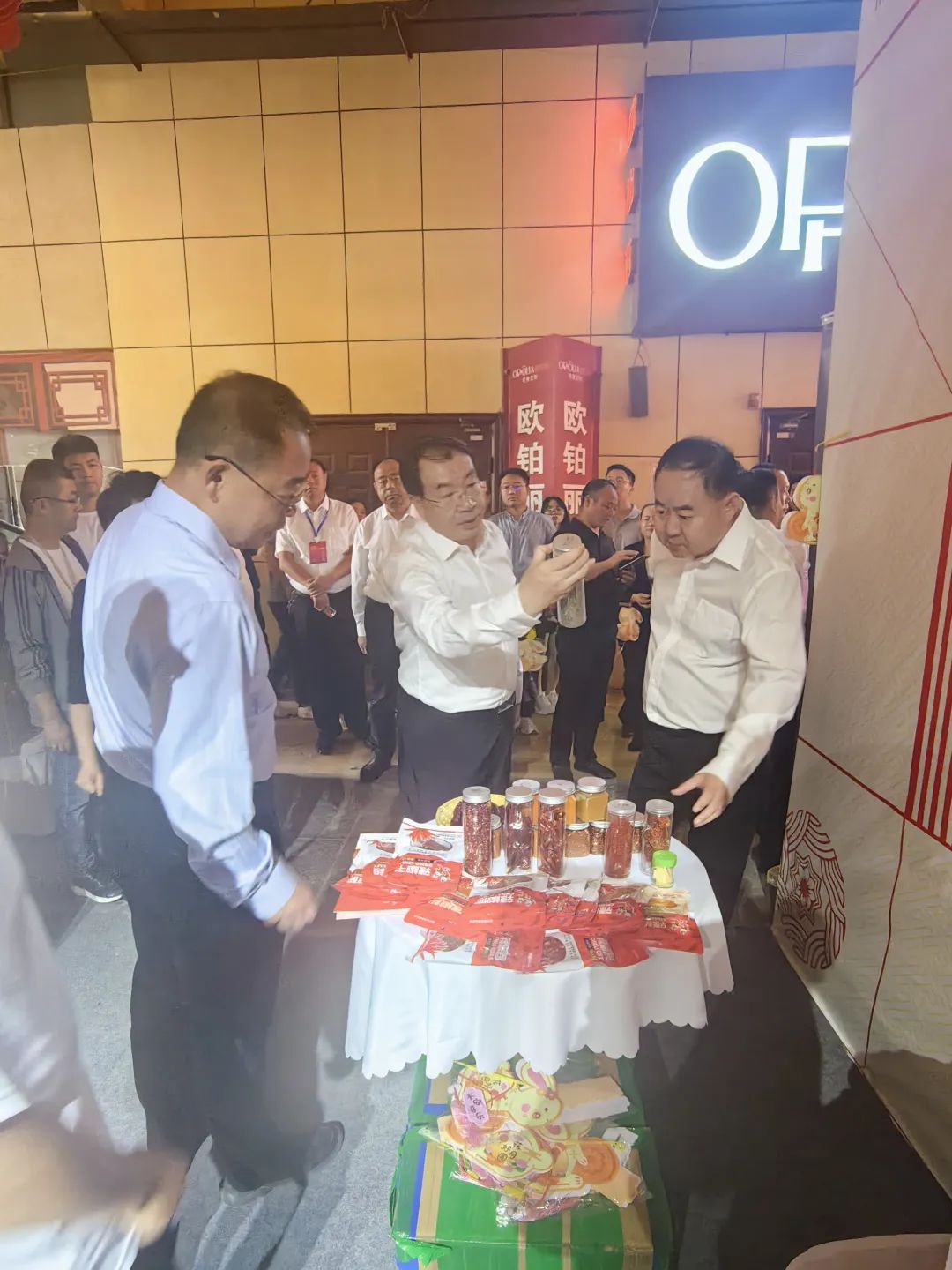 南孟镇李华平书记向藁城区委书记王锦山介绍河北华田食品有限公司、石家庄市众生源食品有限公司和南孟镇生姜特色种植等产业特色。
