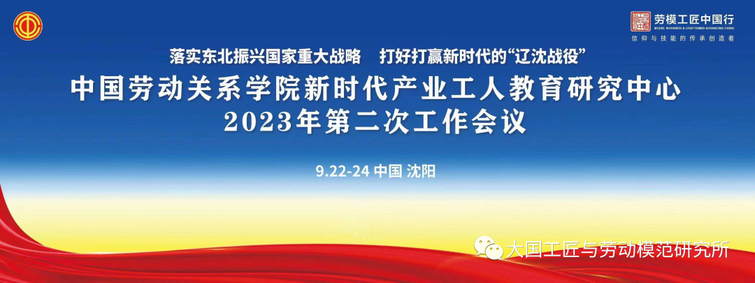 2023年9月23日,中国劳动关系学院新时代产业工人教育研究中心(CWRC)2023年第二次工作会议在沈阳召开。会议总结了此次“劳模工匠中国行沈阳站”取得的阶段性成效,围绕新时代产业工人教育研究中心建设发展和下一步工作开展交流座谈。