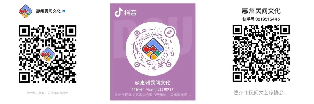 欢迎观众朋友们通过:惠州民间文化网站、微信公众号、抖音号、视频号、快手号等途径光临线上展馆,观看博览会。