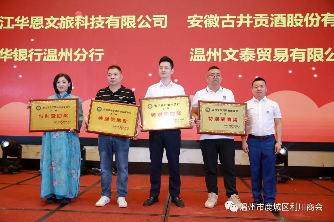 特别鸣谢赞助单位:安徽古井贡酒有限公司,金华银行温州分行,温州文泰贸易有限公司,浙江华恩文旅科技有限公司,以及利川商会的全体会务组成员,感谢你们的无私奉献,我相信商会在会长袁成六的带领下将会越来越好!