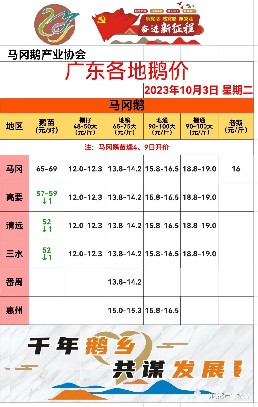 1.以上鹅价消息由开平市马冈鹅产业协会工作人员实地收集,不同地区鹅场均有一定差异,仅供参考!不作为成交依据!不负任何法律责任!如有疑问,请来电咨询!