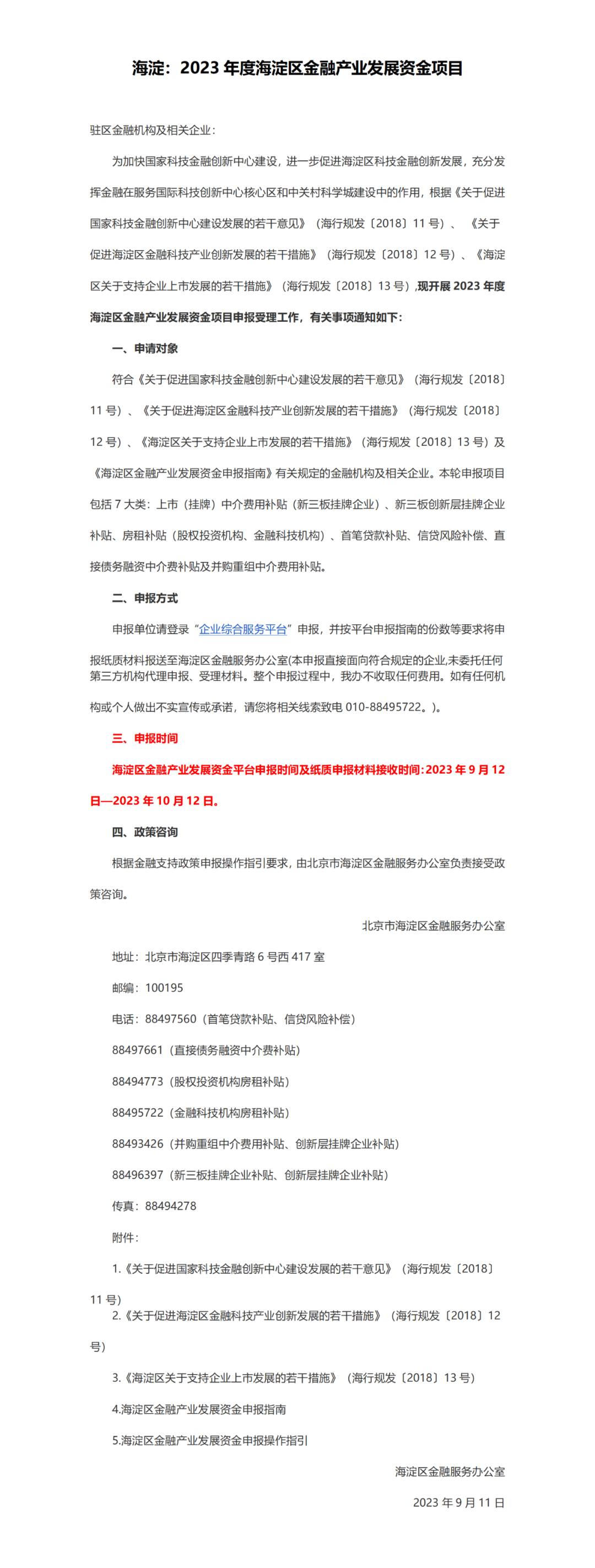 申报倒计时!2023年度海淀区金融产业发展资金项目