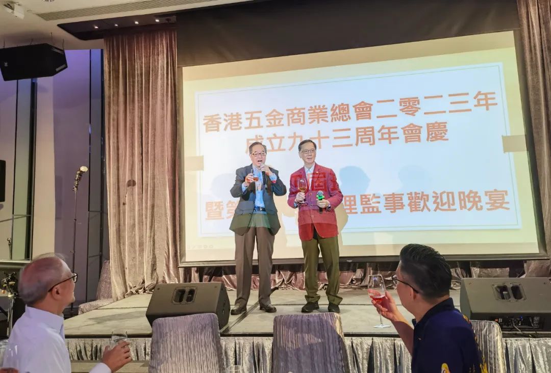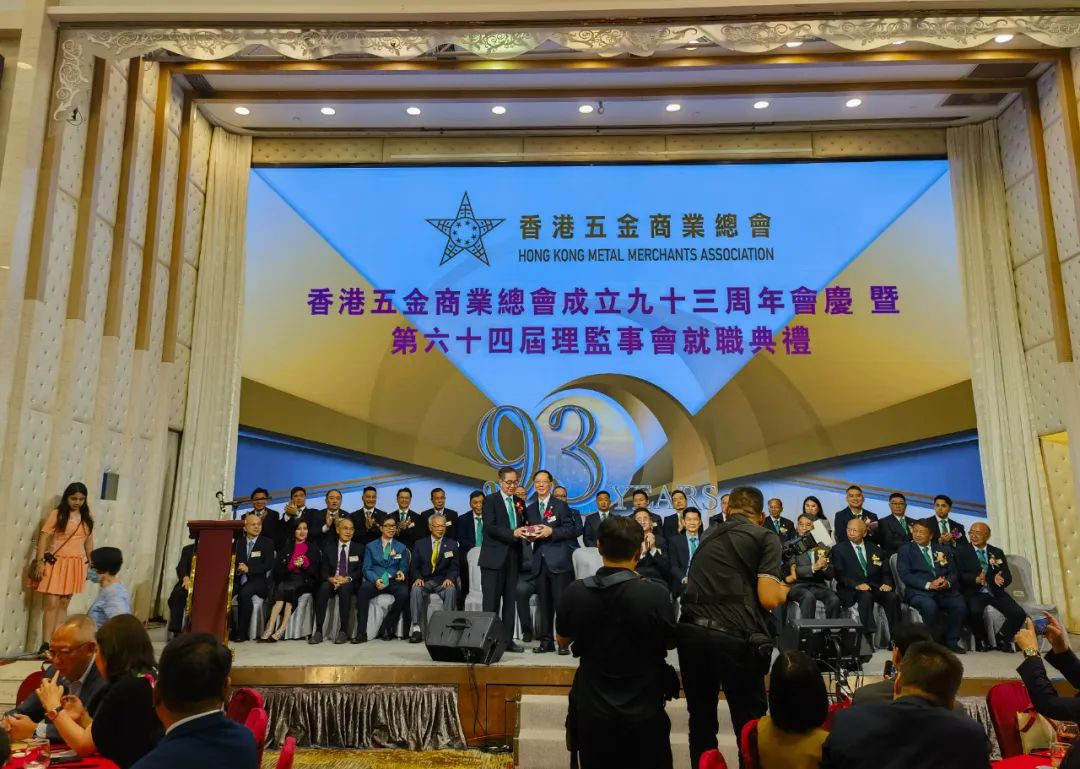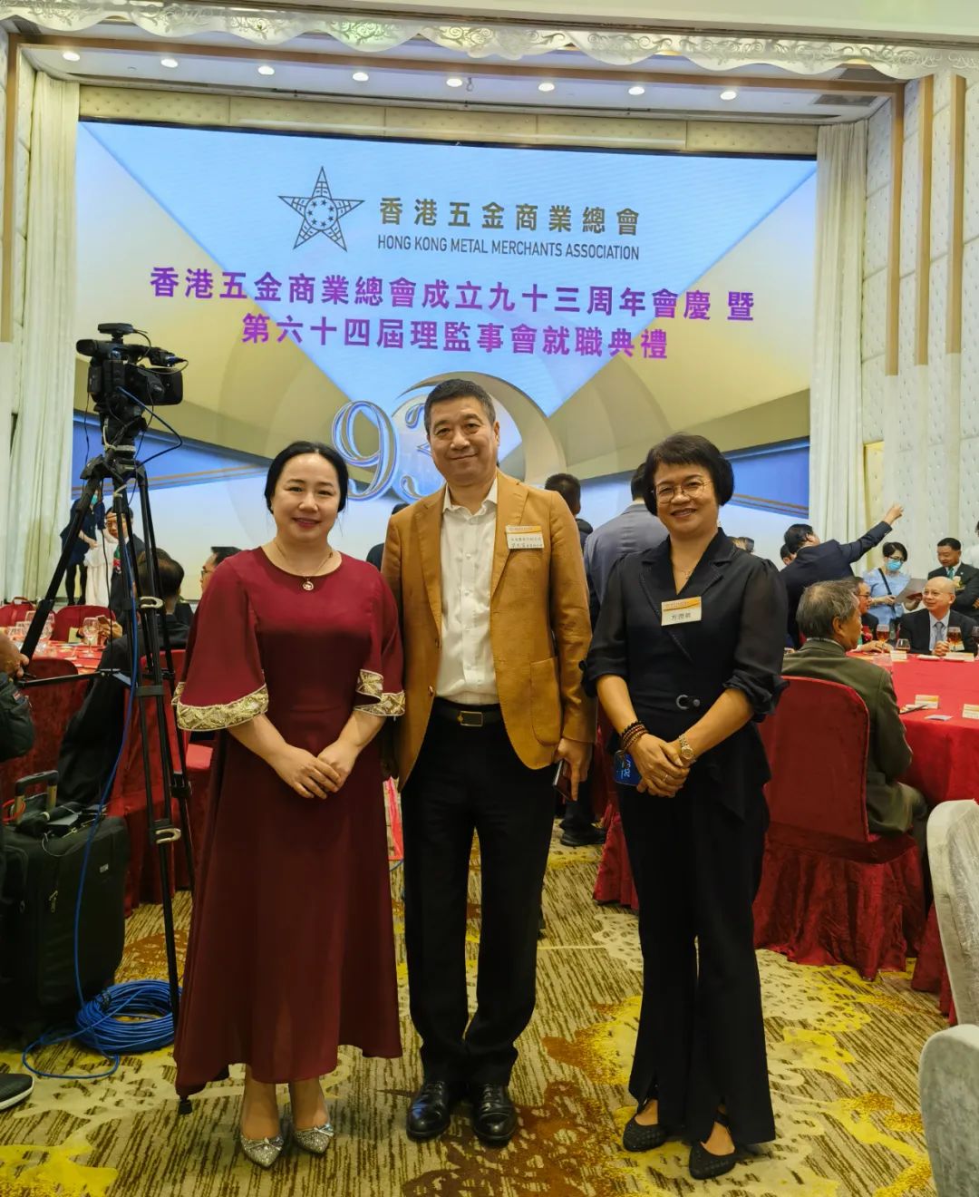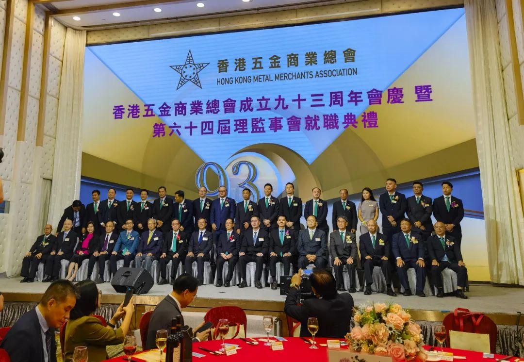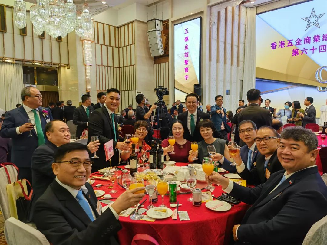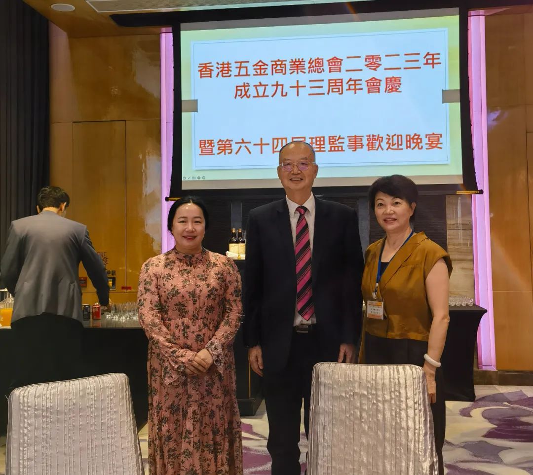 2023年9月19日,香港五金商业总会成立九十三周年志庆暨第六十四届理监事就职典礼在香港百乐金宴国际宴会厅隆重举行。全联五金机电商会常务副会长劳健斌、副会长张蔓霞、副秘书长颜叶、办公室主任袁燕燕,全联五金机电商会团体会员、东莞市五金机电商会执行会长方润弟前往祝贺,来自亚太各国的五金机电行业组织也分别组团出席活动。香港五金商业总会会员、社会各界朋友等600多人共庆盛典。