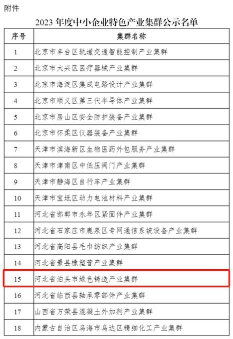 关于2023年度中小企业特色产业集群名单的公示丨多家铸造及相关产业集群入选