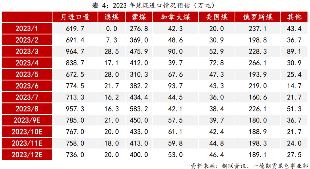 5.2 焦煤进口高增速面临考验,4季度进口量环比预期回落