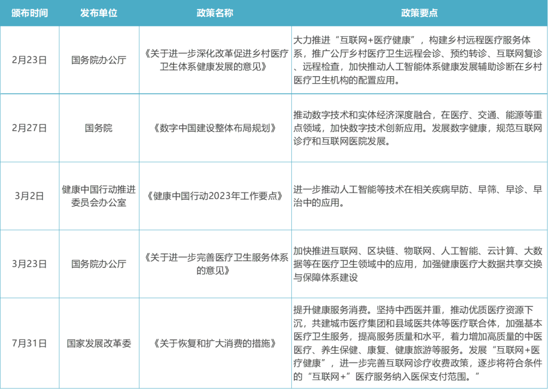 表2:2023上半年医疗健康产业主要政策展示表
