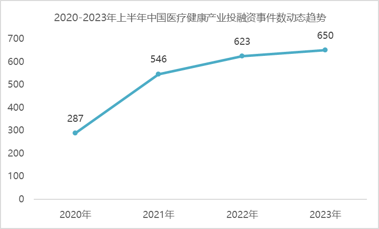 事实上,在创投市场整体低迷的背景下,医疗健康产业领域,投融资活跃度暗流涌动,可以通过2020年以来各年上半年投融资事件数量变化感受端倪。
