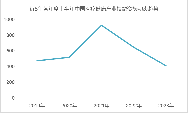 图1:近五年各年度上半年中国医疗健康产业投融资额动态趋势图