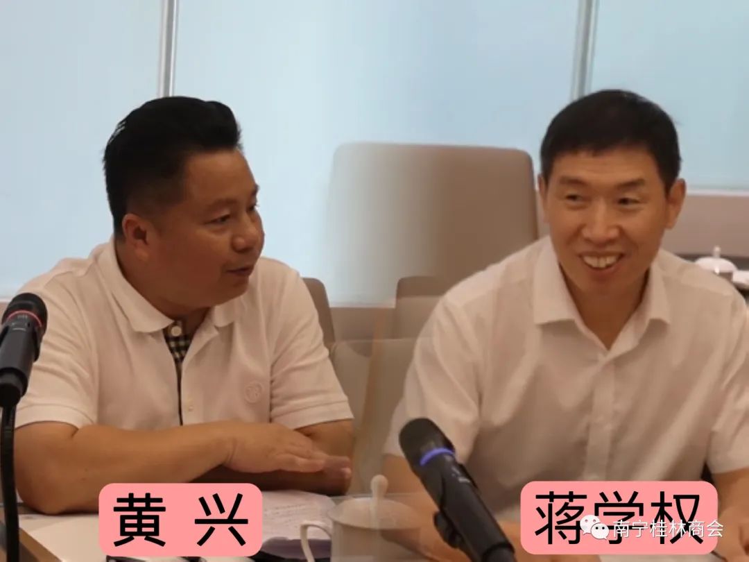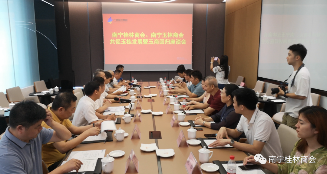 座谈会上,南宁桂林商会会长蒋学权先生,南宁玉林商会会长黄东先生,分别就各自商会的基本情况及近期动态作了简要阐述。双方与会人员也就企业发展情况及两商会的协作进行了深入探讨和交流。